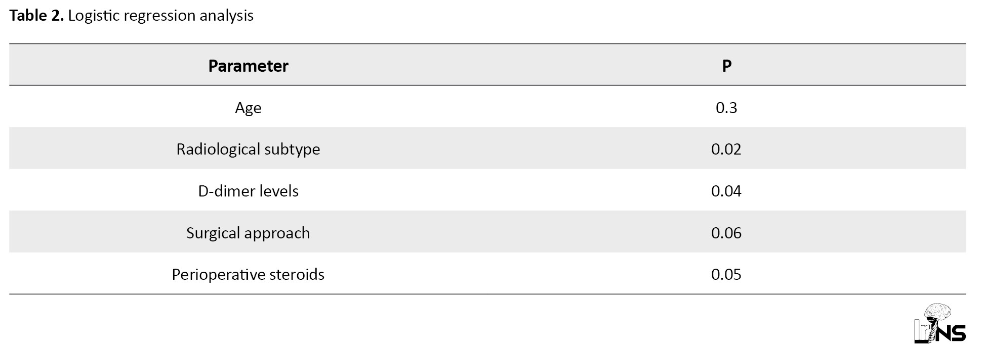 Accordingly, the radiological subtype, levels of D-dimer, and perioperative steroid use had a statistically significant correlation with recurrences, while the surgical approach neared statistical significance.